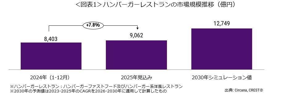 ハンバーガーレストランの2025年市場規模は9062億円、前年同期比7.8%増加