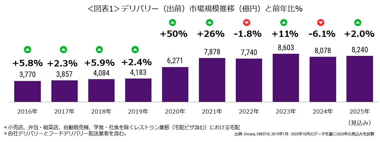 外食・中食市場情報サービス『CREST®*1』を提供するサカーナ・ジャパン株式会社(エヌピーディー・ジャパン株式会社より社名変更、東京都港区、ケビン・ソー代表)は、デリバリー市場レポートを2025年12月17日に公表します。