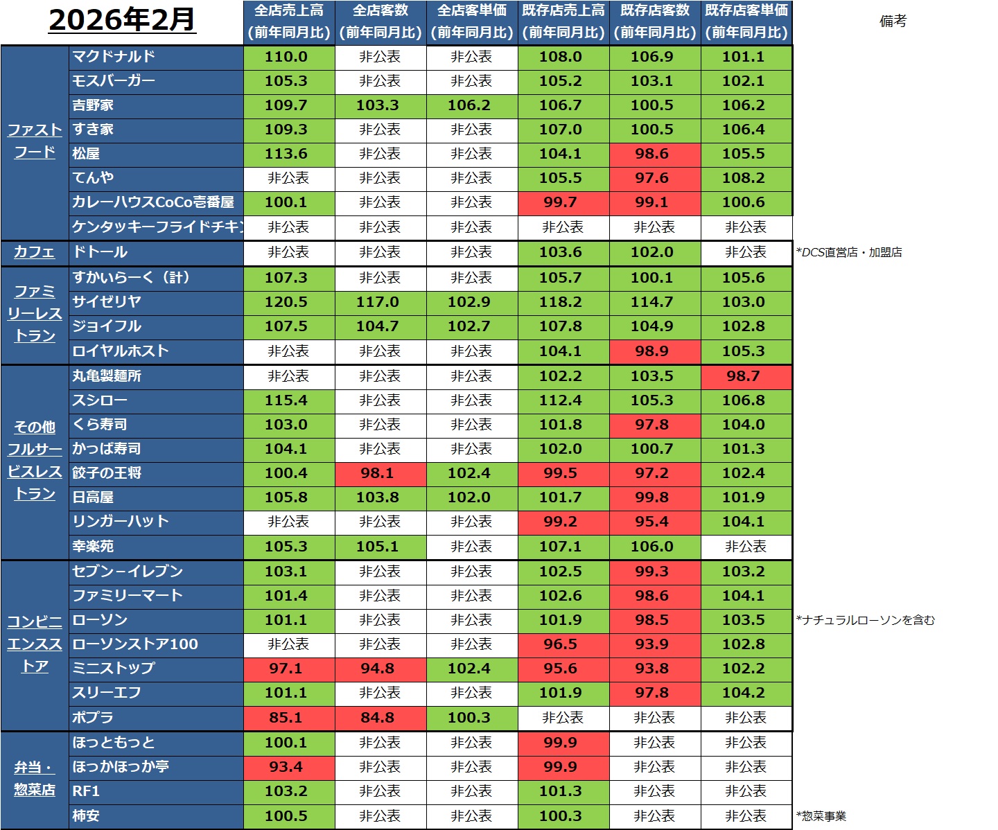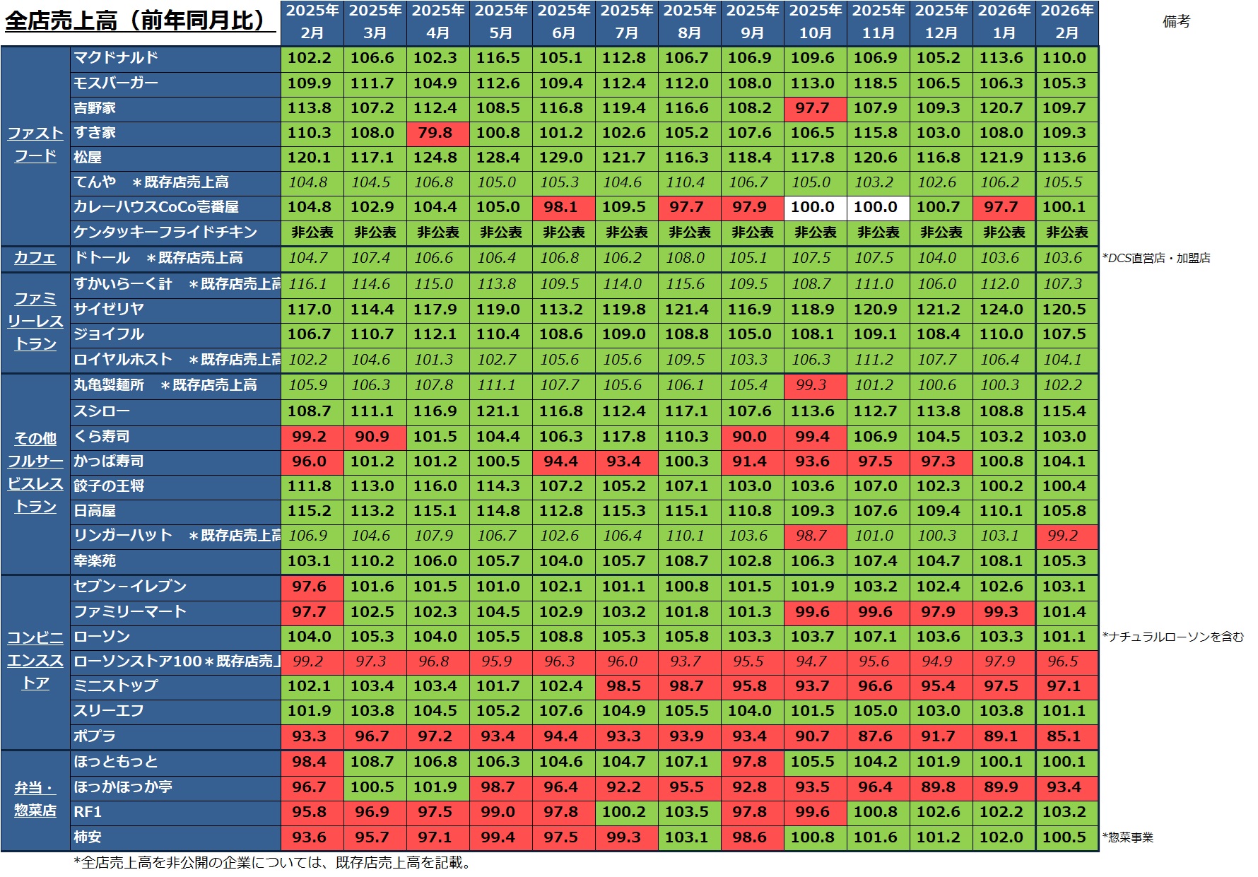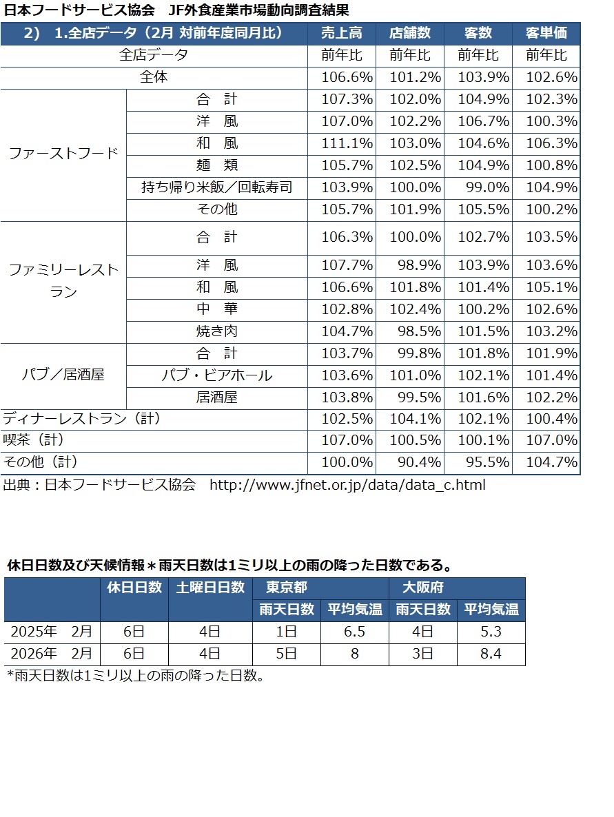 2026年2月の各社・各業態売上情報、マクロ経済指標
